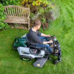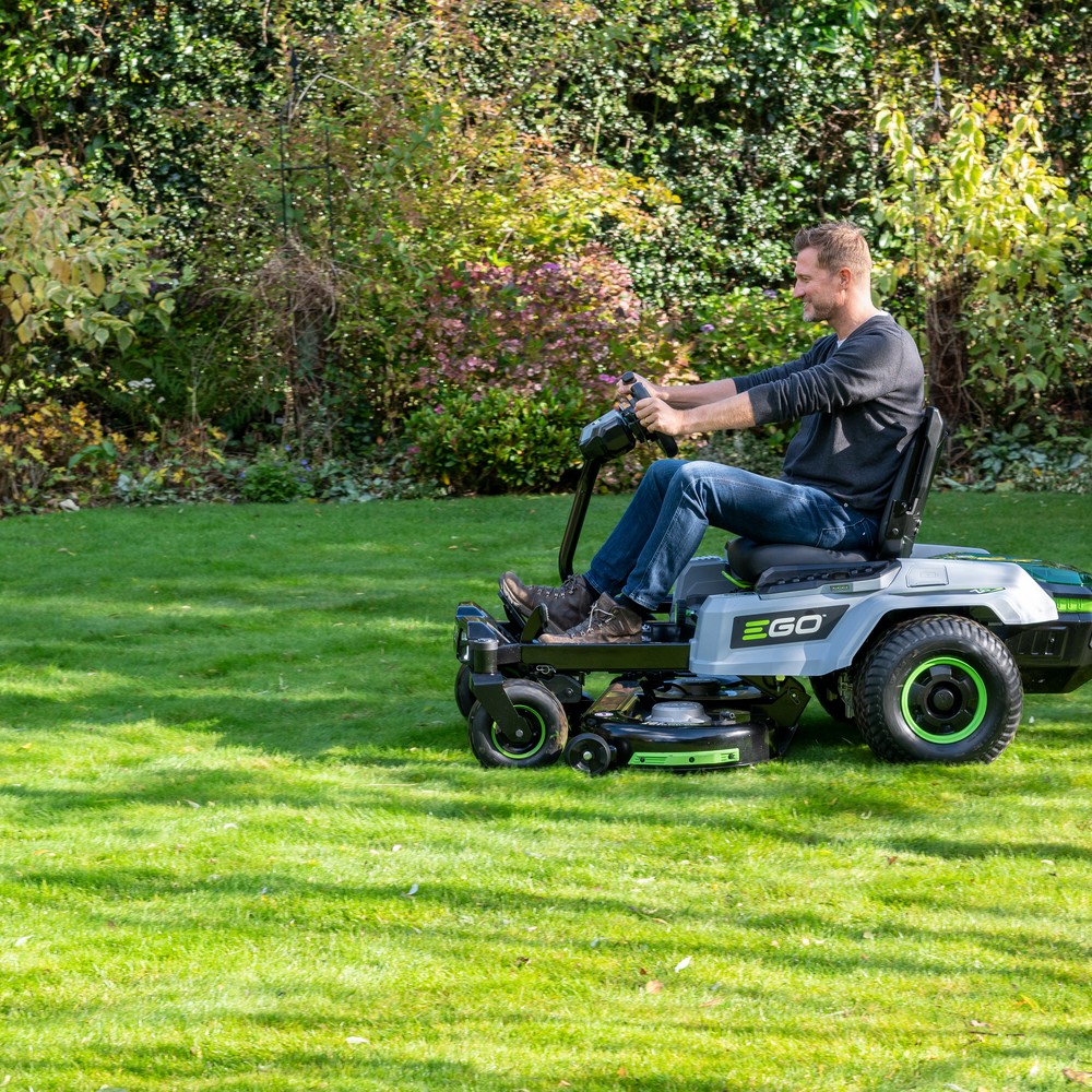 The EGO Z6 42″ e-STEER introduces the industry’s first steering wheel control on a zero-turn – drives like a car, turns like a ZTR. With four independent brushless motors delivering 22 horsepower equivalent and four 12Ah batteries included, it covers up to 2.5 acres on a single charge.